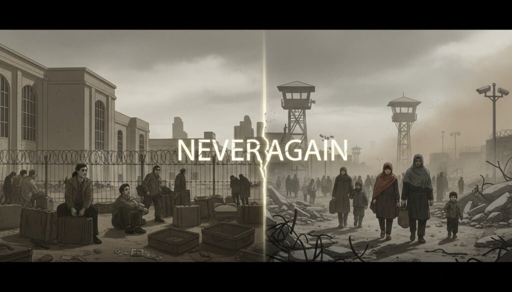 A diagnostic analysis of how the West applied “never again” selectively — confronting genocide in Europe while enabling or excusing Palestinian displacement. Explains the continuity from the 1930s refugee failures to the Nakba to Gaza today, showing the persistent pattern of sympathy without action and morality overridden by political interests.